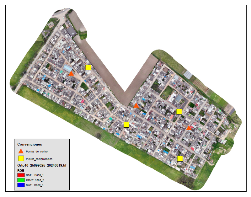 Generación de ortofotos, modelos digitales de terreno, modelos digitales de superficie y curvas de nivel de alta resolución, a partir de la toma de fotografía aérea con dron y control de campo topográfico de alta precisión.